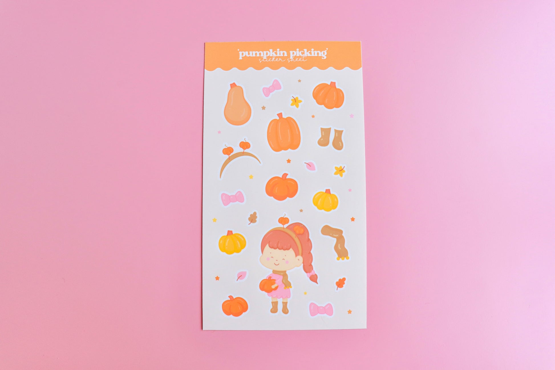 Bring a touch of autumn to your journal, planner, or laptop with this adorable Pumpkin Picking sticker sheet!