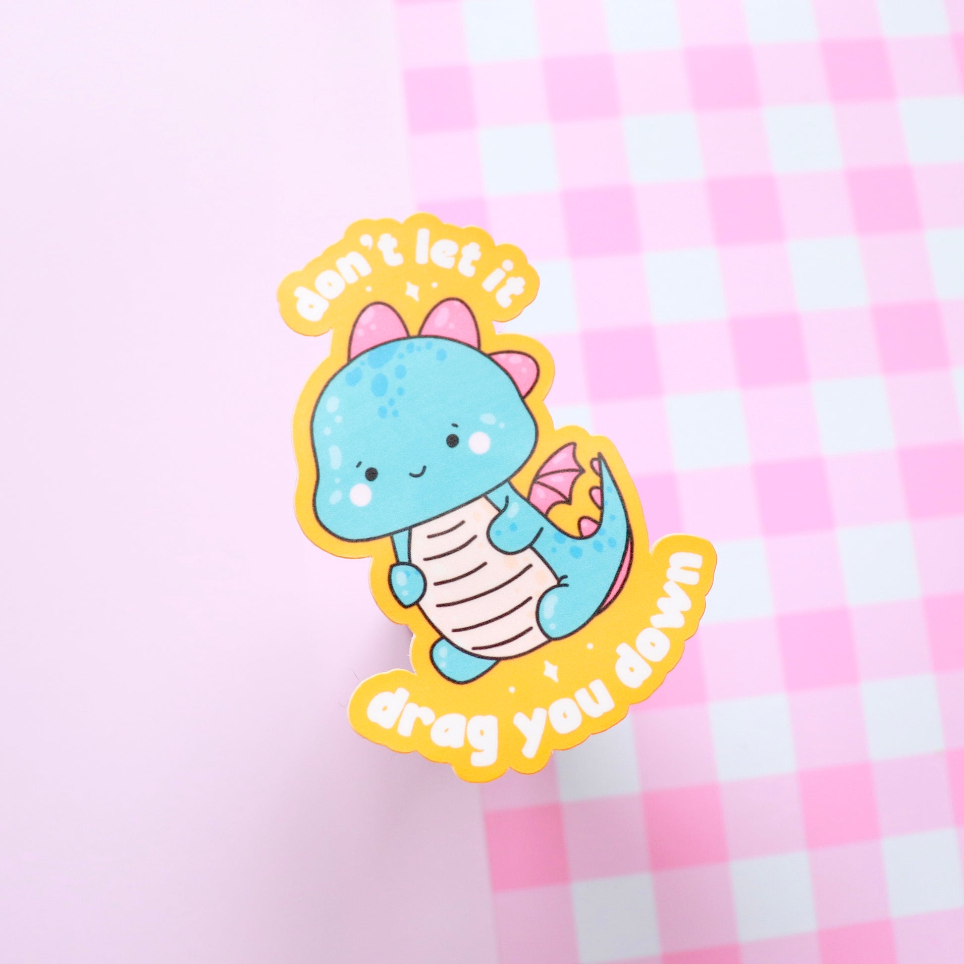 This colourful kawaii dragon with the "Don't Let It Drag You Down" pun is the perfect reminder to stay positive, no matter what comes your way!